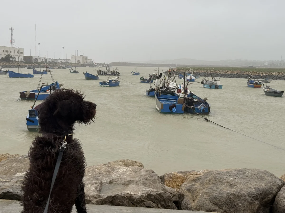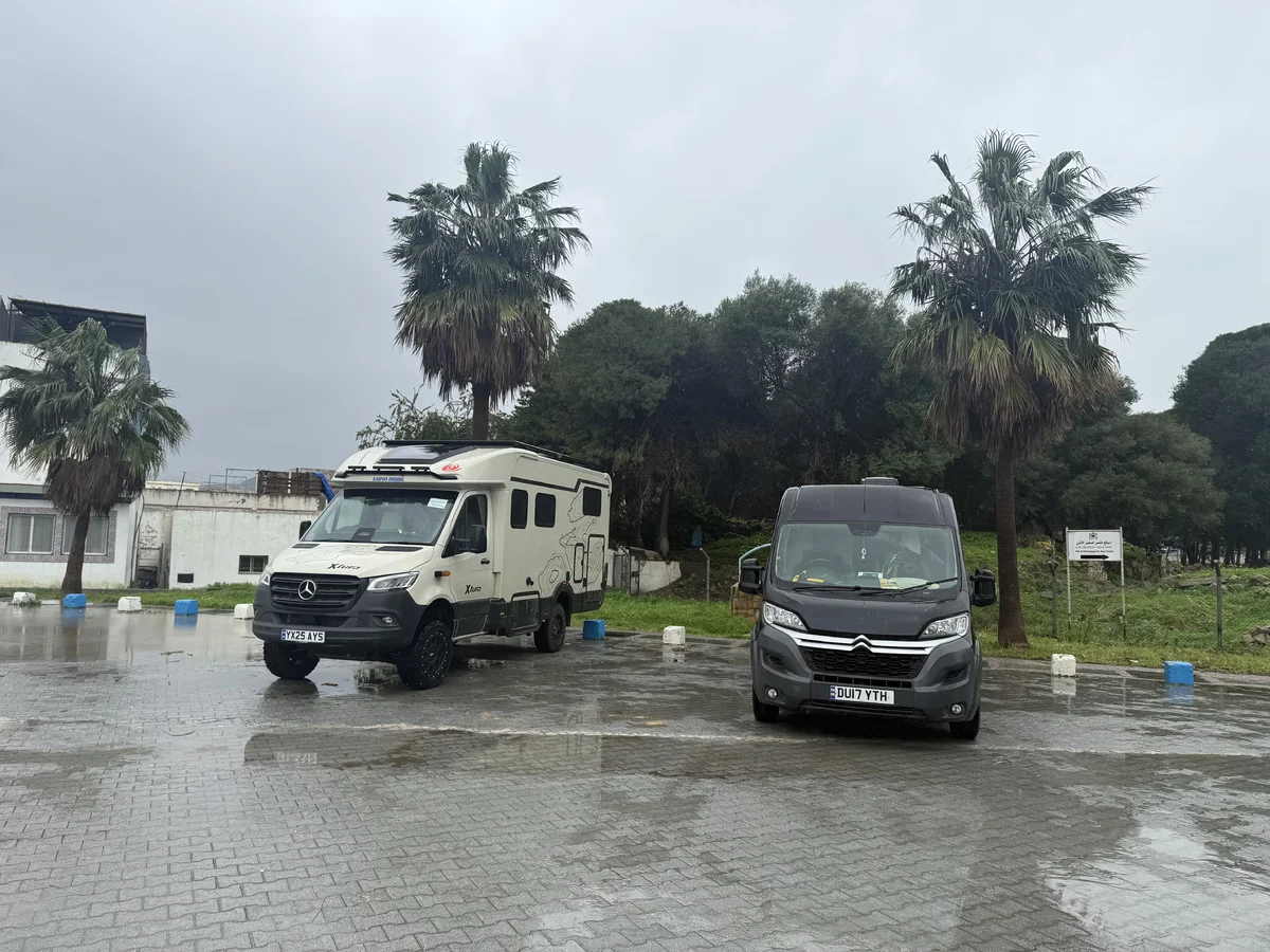 Whatever, we looked at the queues of trucks and vans other trucks and decided tomorrow was the best bet. We drove back to Ksar Sghir a small village near the port. We’re parking in a car park near the beach with an array of other vans trucks waiting for the port to open. They’re mainly french, the one brit here left shortly after we arrived. Not sure what we said. There’s a beach, another gang of friendly puppies a good view of the port where there might be a boat leaving for spain at 9am tomorrow. Or yesterday.